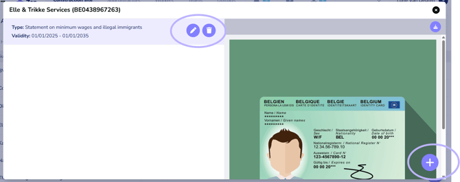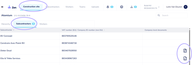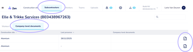 These documents are linked to a company and can be consulted from the "sites" and "subcontractors" tabs.